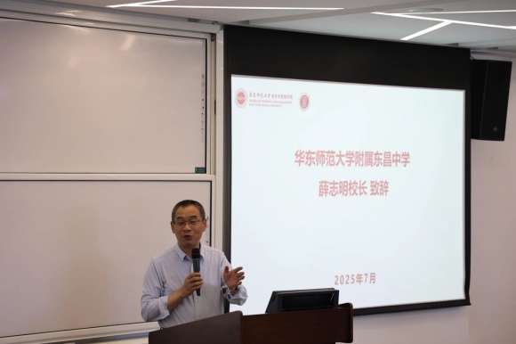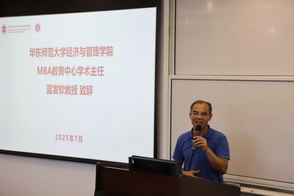 2025年7月1日,第七期DC金融优才班开班仪式在华东师范大学中北校区顺利举行。出席开班仪式的嘉宾有华东师范大学经济与管理学院MBA教育中心学术主任蓝发钦教授、华东师范大学附属东昌中学校长薛志明老师、教学处主任向荣老师、金融优才班班主任团队:周慧敏老师、张瑾怡老师和赵栩昊老师。开班仪式由华东师范大学经济与管理学院校友工作办公室的董玲燕老师主持。