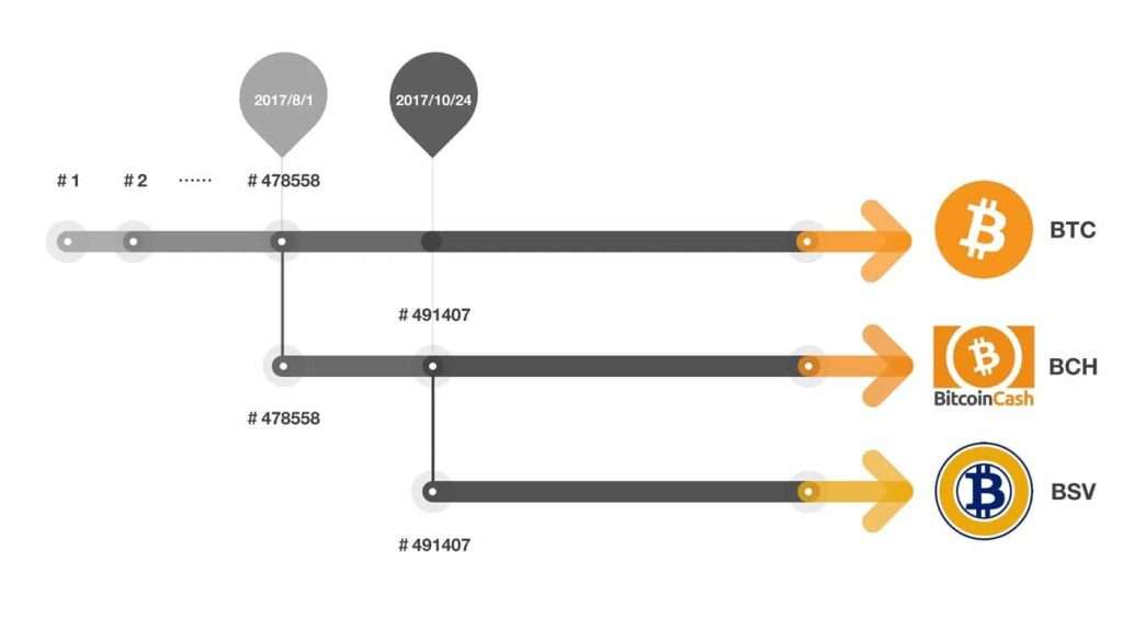 BCH,中文为比特币现金,在区块高度为#478558时(2017年8月1日),进行硬分叉。